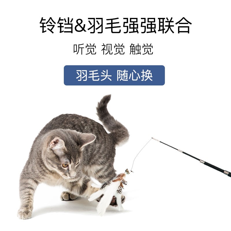 Telescopic teasing cat stick steel wire feather 1 8m extra-long fishing rod resistant to bite with bell Cat Toy Unsmothered Pet Supplies