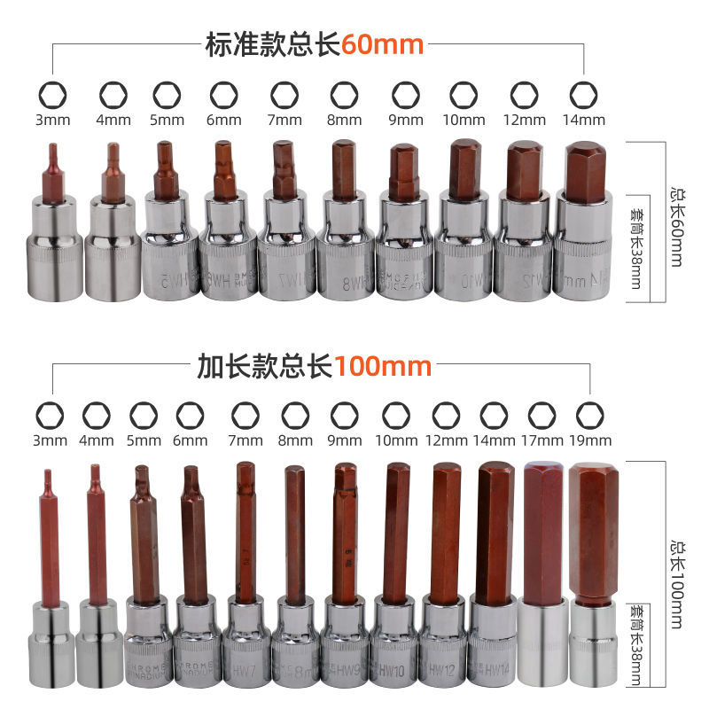 Electric screwdriver special large fly lengthened screwup sleeve suit inner hexagonal pressure batch quick wrench batch head screwing tool