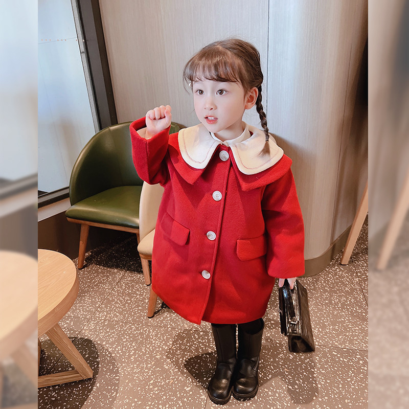 Egg roll mm girl jacket fur for winter dress New Year's red Korean version of the year served with a thickened baby, baby coat