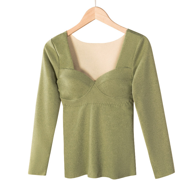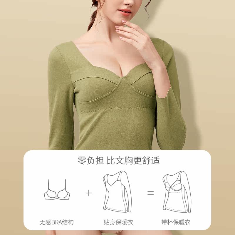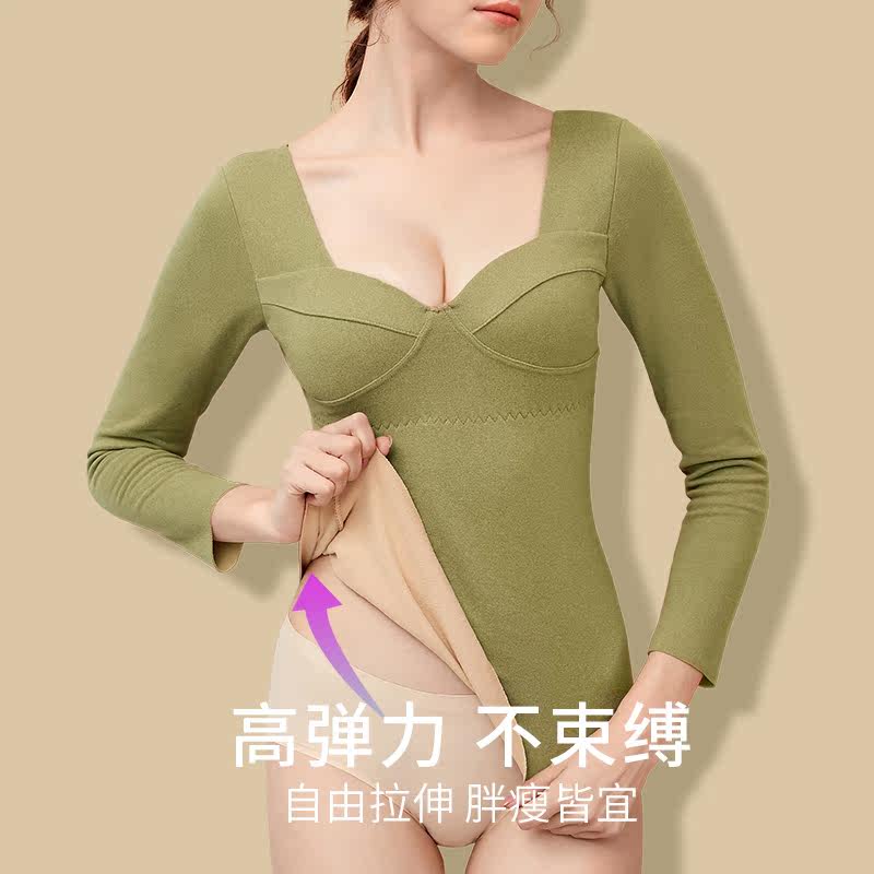 Heating clothes Women plus suede thickened Develled spontaneous thermal autumn clothes with chest cushion No-mark low-collar inner lap jacket winter
