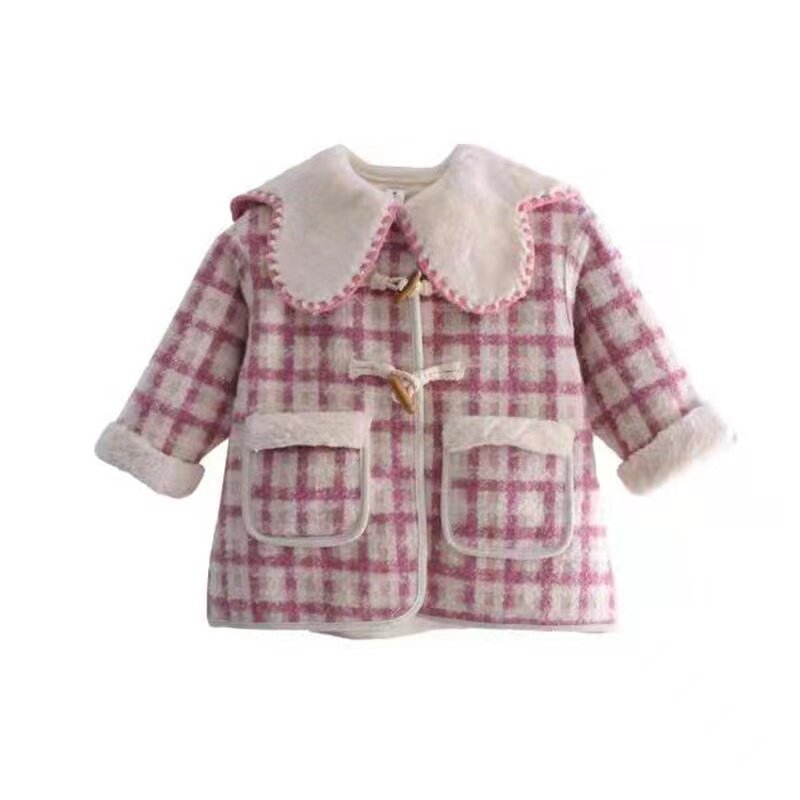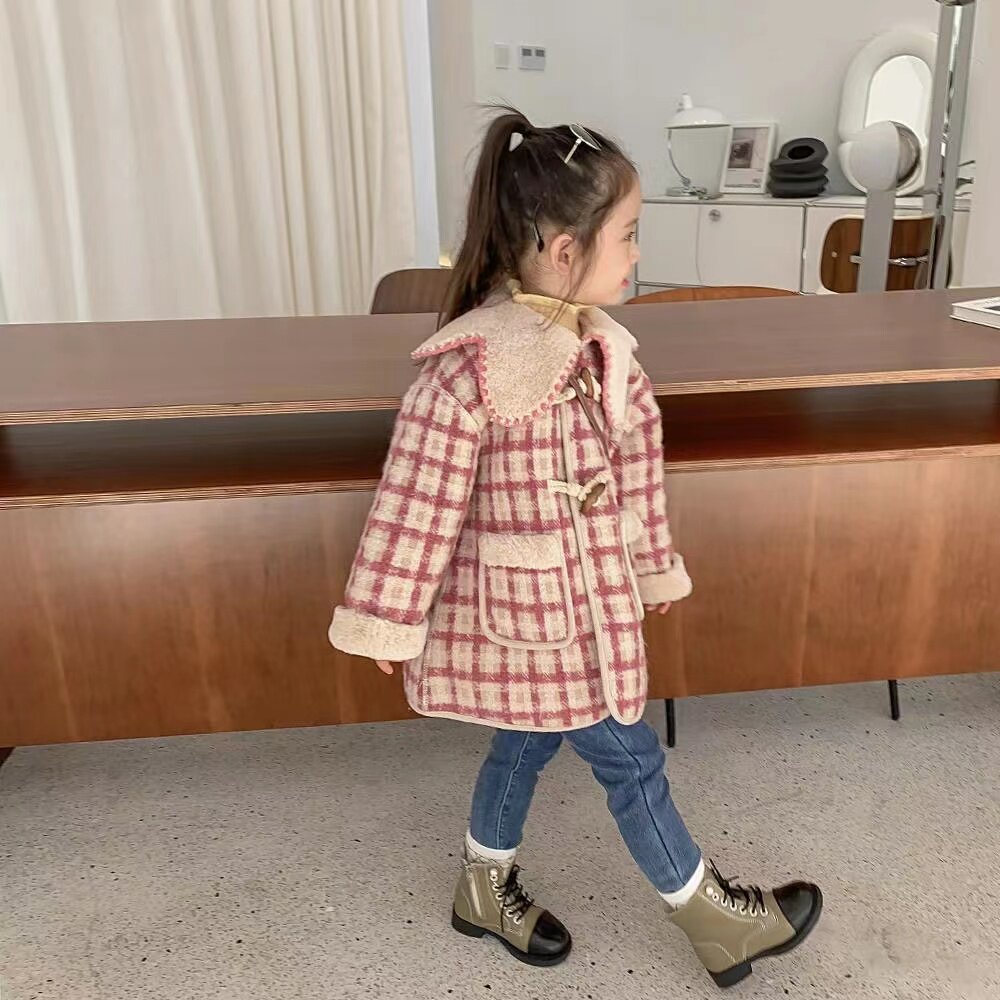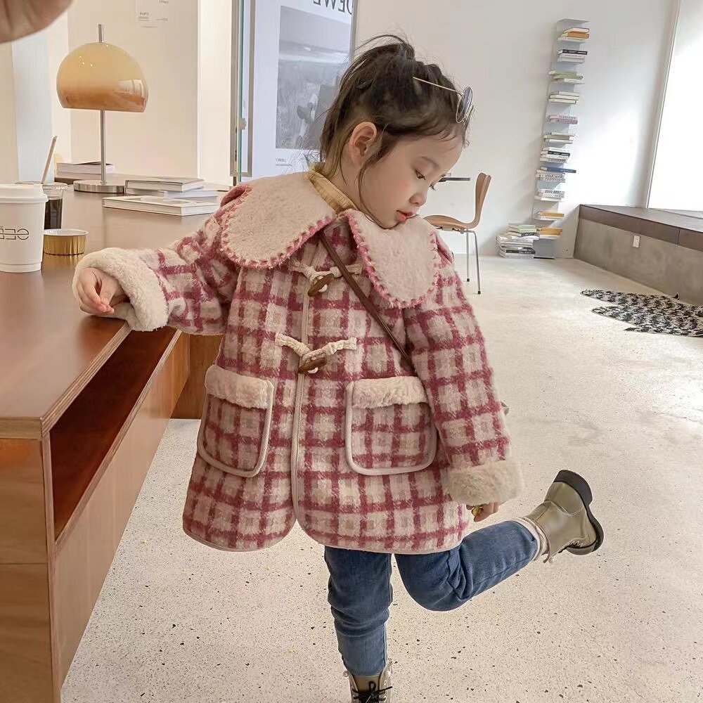 Girl Plaid Hair Coat 2021 Autumn Winter New Plus Suede Thickened Fur Integrated Child Korean Version Petal Tide