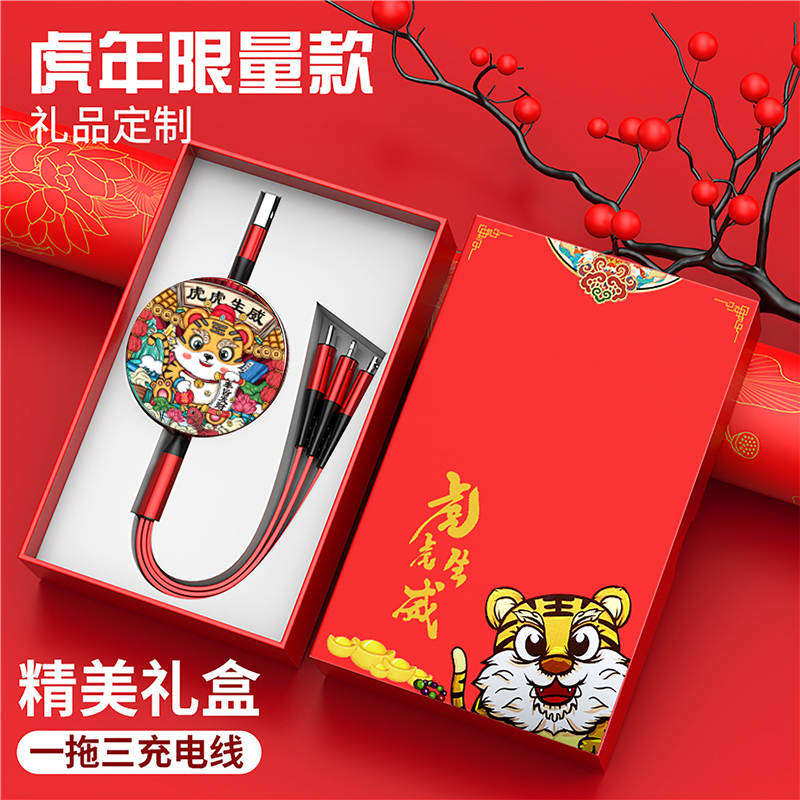 Three-in-one Data Line Wholesale Custom Logo Advertising RMB20 Small Gift One Tug of Three Fast Charging Phone Charging Line Dingding Do extension multi-head function Applicable to Apple Huawei typec