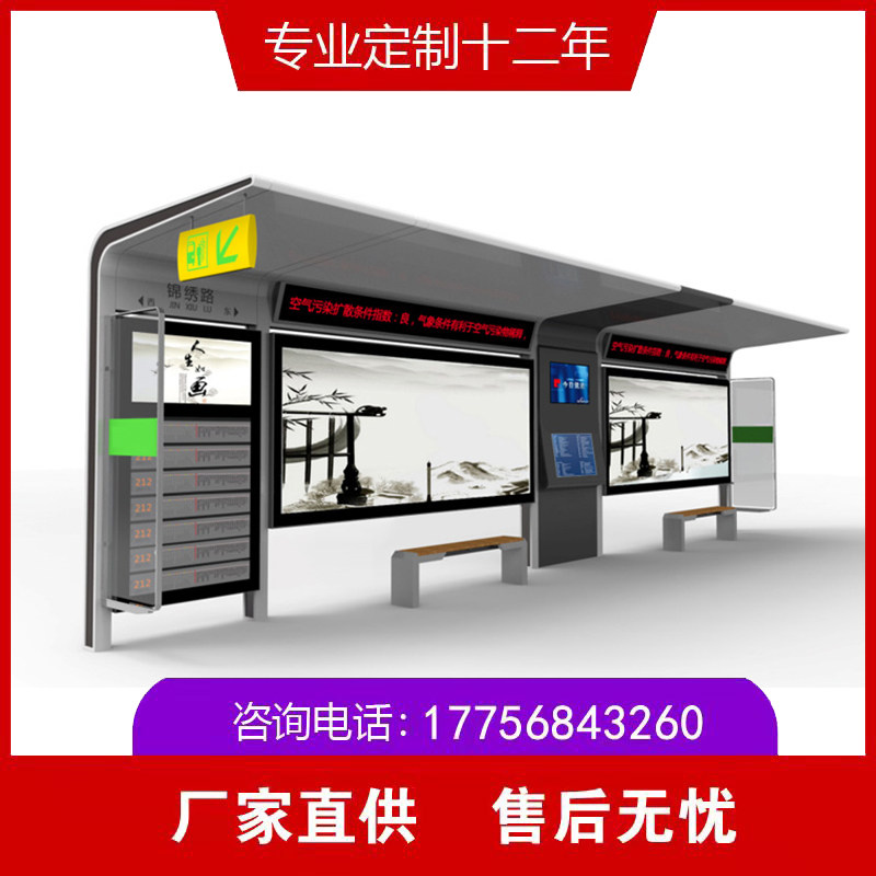 Hot Pin Smart Waiting Booth New Modern City Bus Platform Stainless Steel Propaganda Bar Station Card Maker