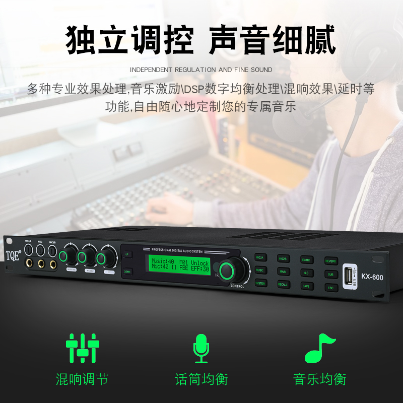KX600 digital KTV front-end effector home karaoke mixer stage anti-whistle professional audio processing