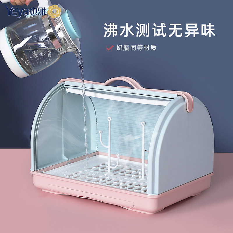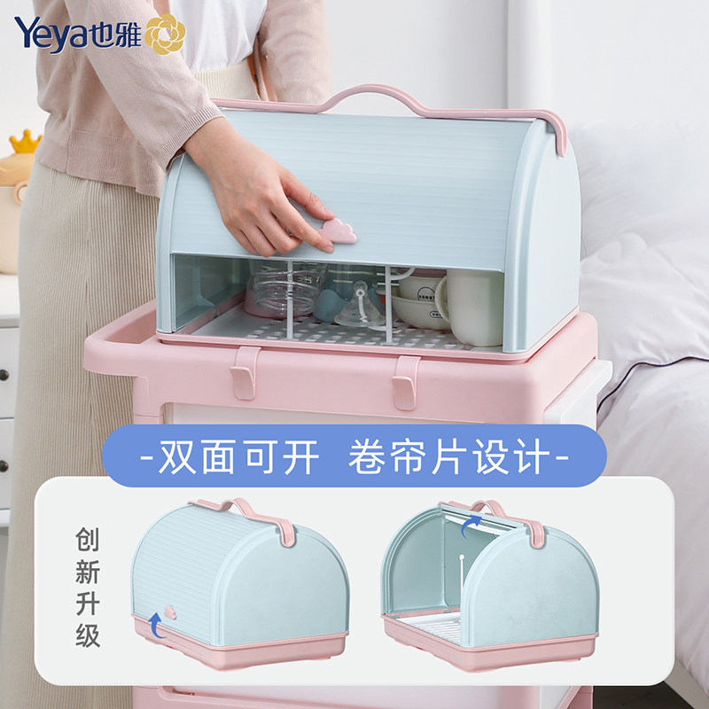 Yeya baby bottle storage box storage box baby trumpet dustproof belt cover storage rack baby tableware drain rack