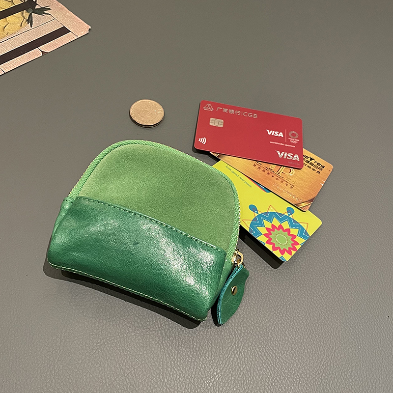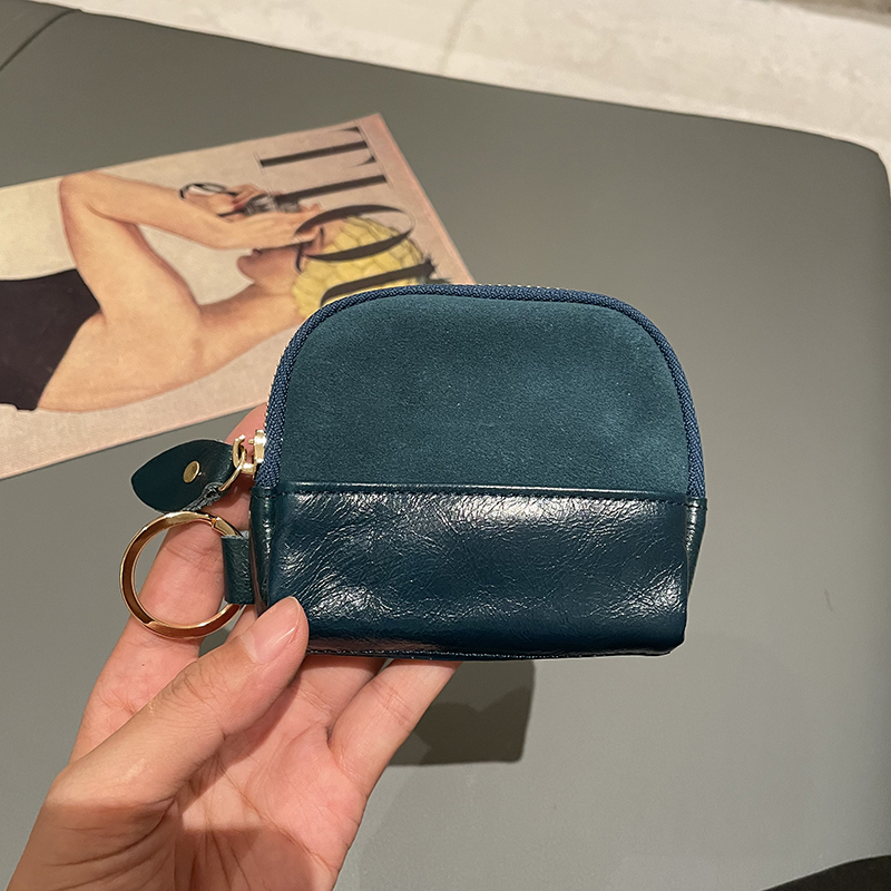 Retro Zero Wallet Frosted Leather Parquet Oil Wax Cow Leather Short Wallet Fashion Semicircle Coin Bag Genuine Leather Laced Jewellery Bag