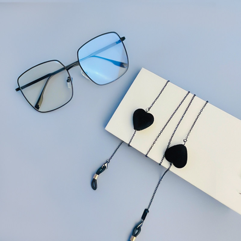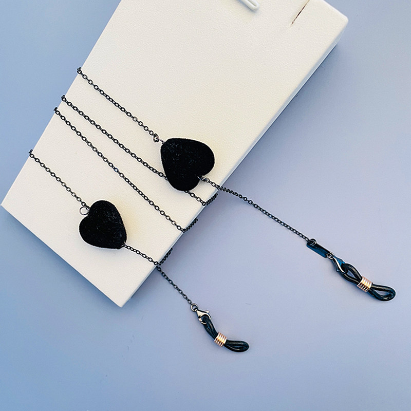 Black velvet heart glasses chain women's hanging neck non-fading hypoallergenic sterling silver glasses sunglasses hanging chain mask hanging chain
