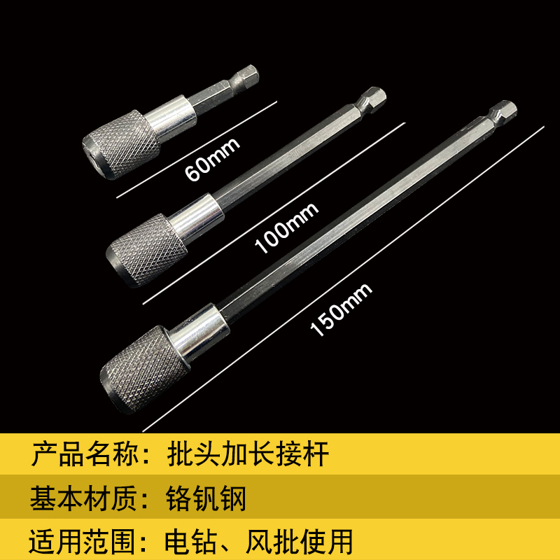 Lengthened baton-head electric drill joint extension rod 6 35mm Magnetic inner hexagon 1 4 sleeve Self-lock connecting lever