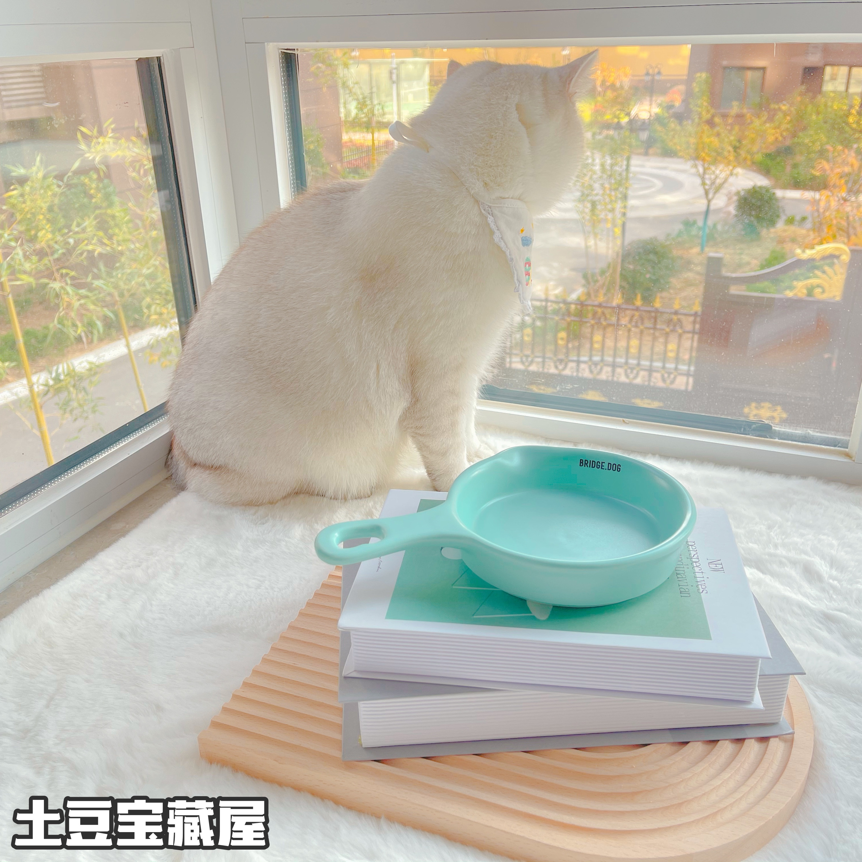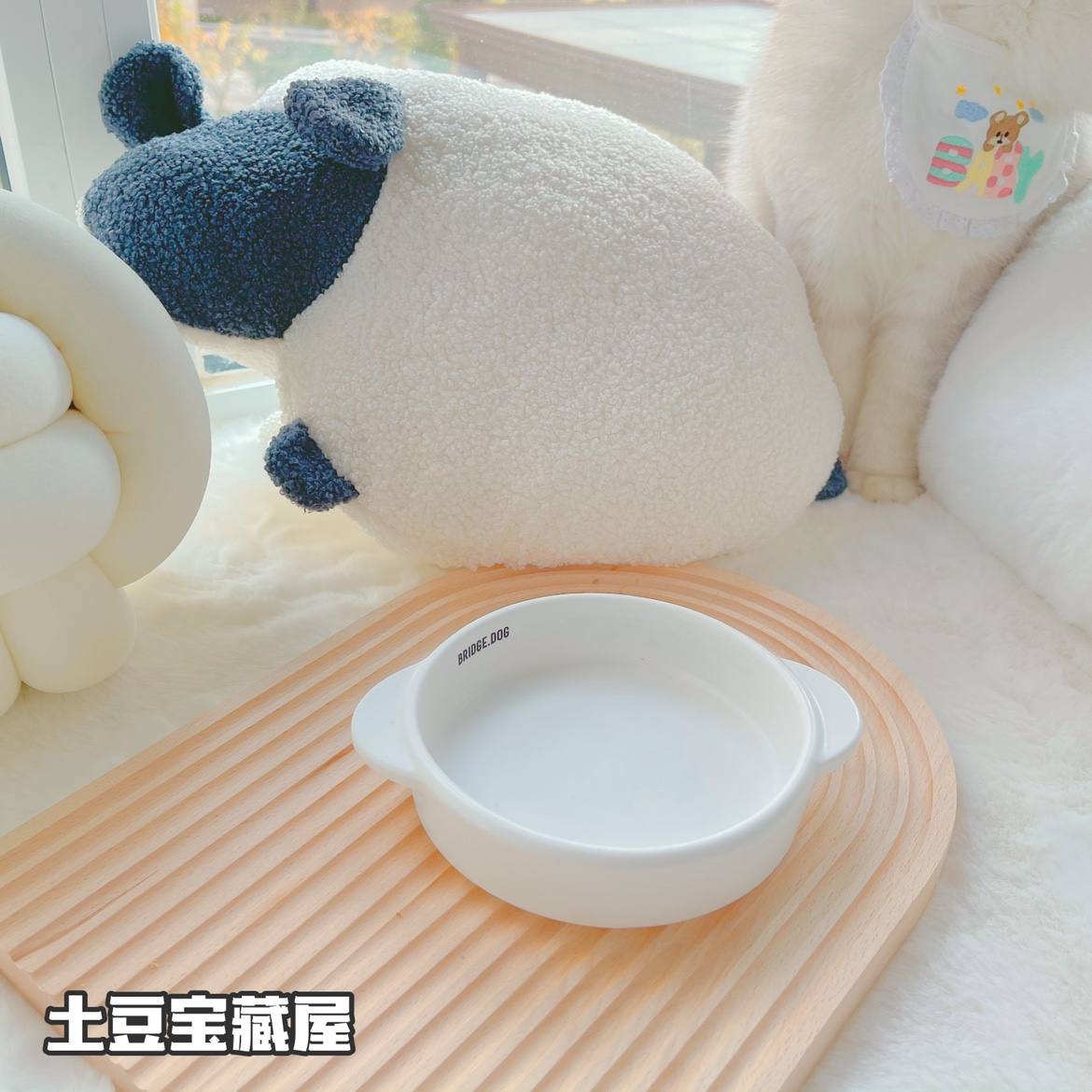 Korea Bridge Dog pet bowl ins ceramic bowl cute net red cat and dog bowl pan flying saucer plate photo