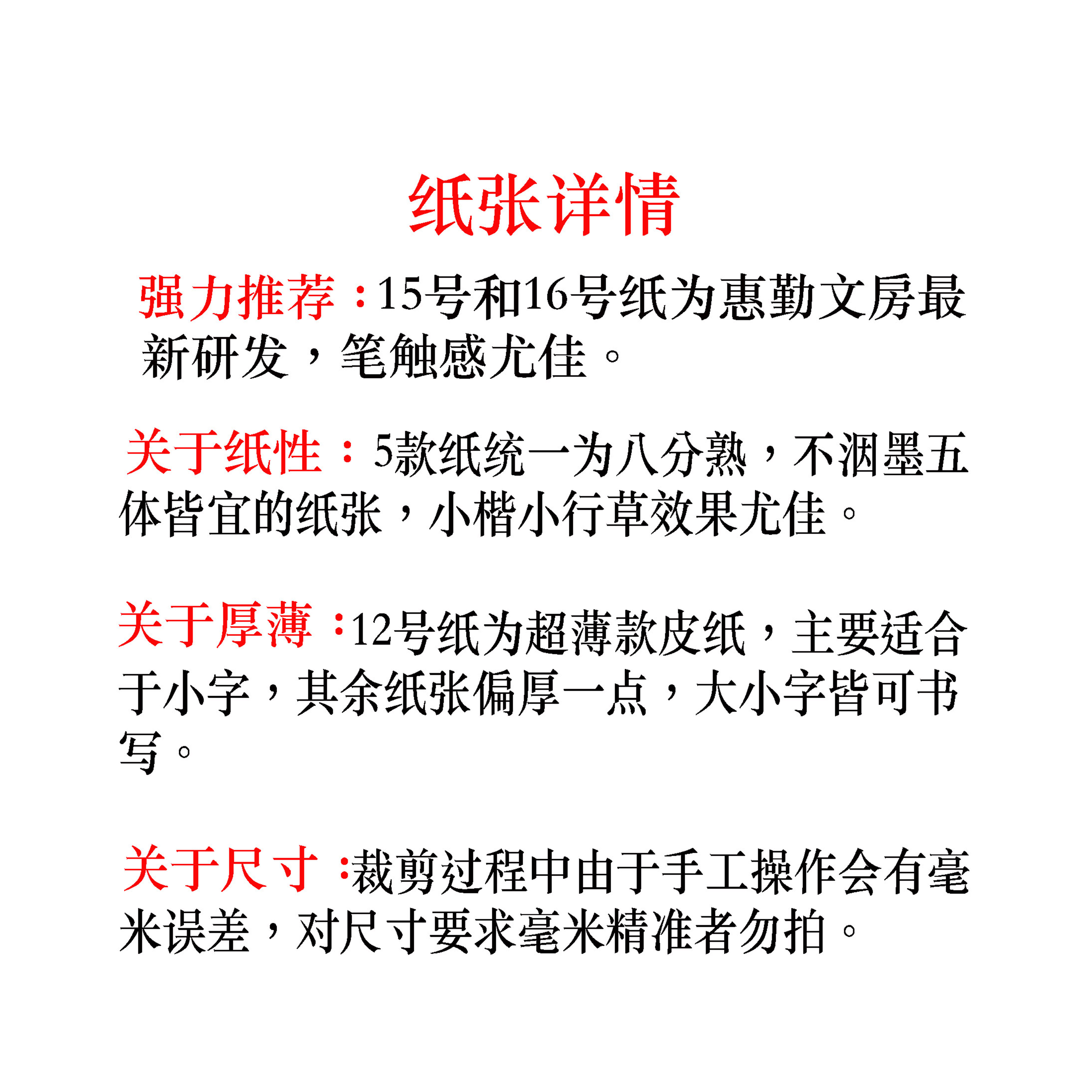 (Huqin Huizang Hall) New 12 13 13 15 16 No. 16 Paper authoring leather paper 80% cooked five bodies are all advisable