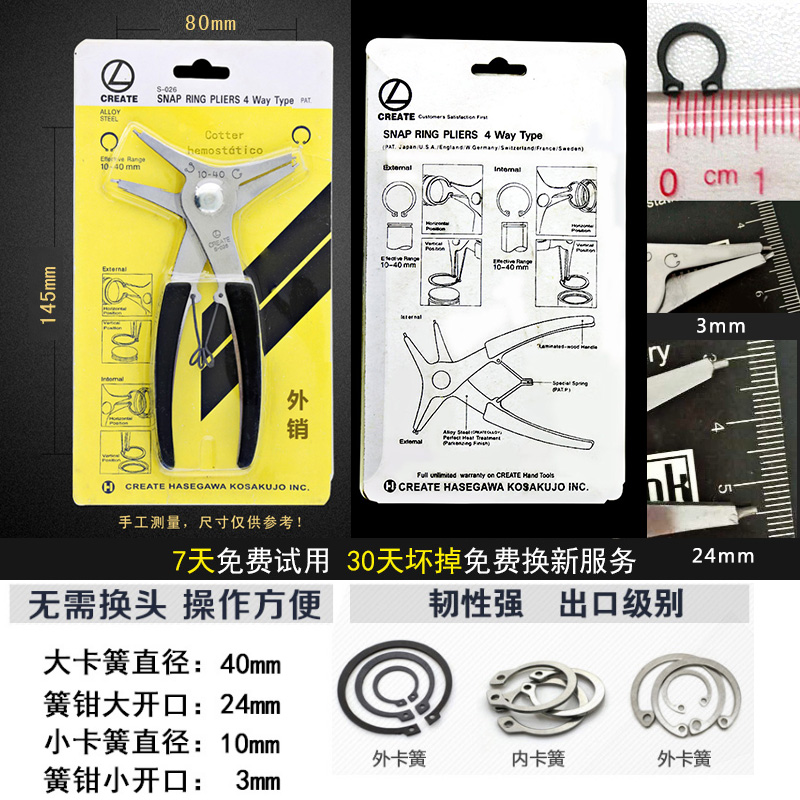 Internal and external dual-use snap clamp C type clasp clamp inner card external card Four-in-one 2-fit 1 snap-clamp hardware card ring pliers