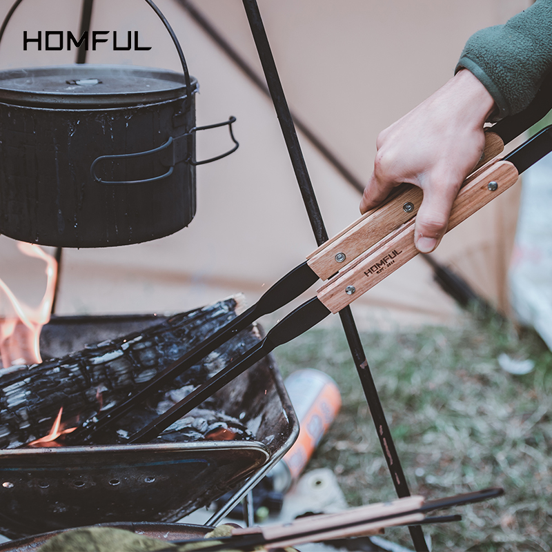 HOMFUL Haofeng outdoor barbecue equipment fire tongs shovel hook clip three-piece anti-scalding shovel charcoal household tools