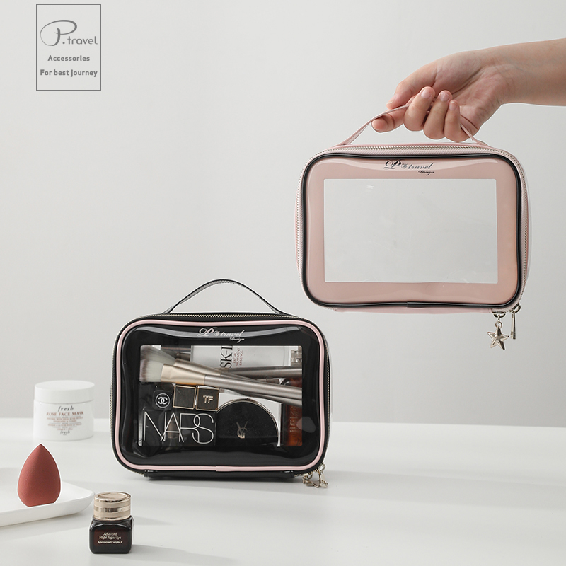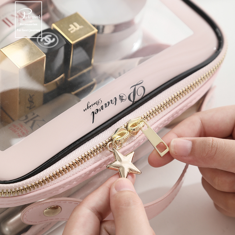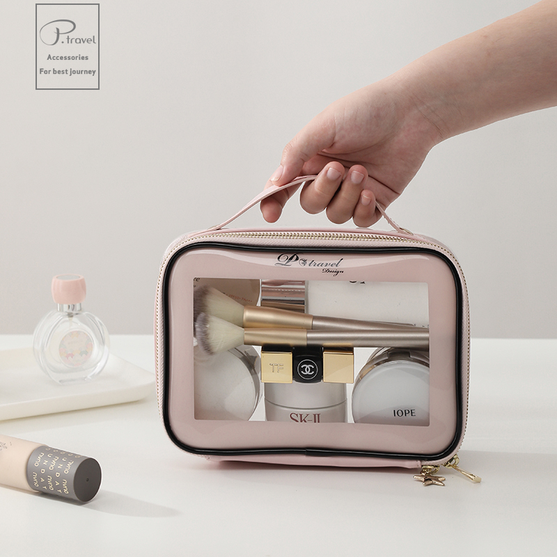 Hand-held cosmetic bag jelly transparent female large-capacity portable travel travel carry-on wash cosmetic storage bag