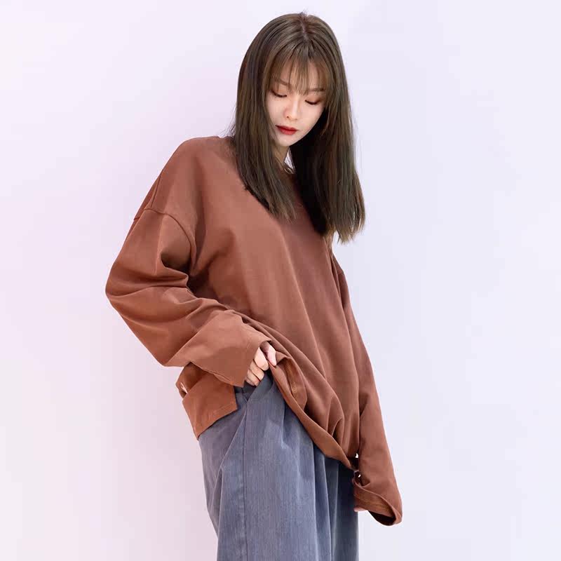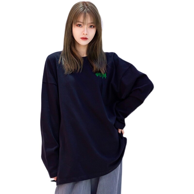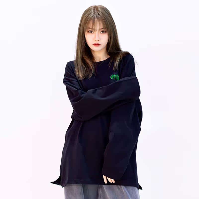 TOXIC all-match new round neck commuter embroidery solid color long-sleeved t-shirt for men and women of the same style loose one-piece inner top