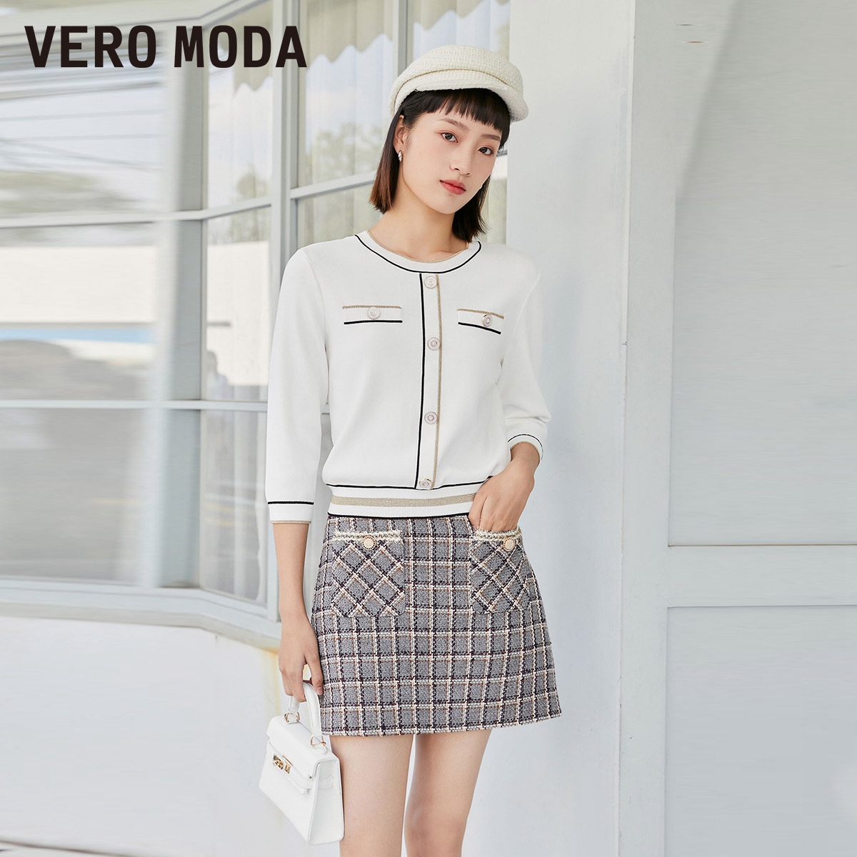 Vero Moda spring summer style button to decorate white small fragrant wind short sleeve sweet-knitted sweatshirt female) 322124006