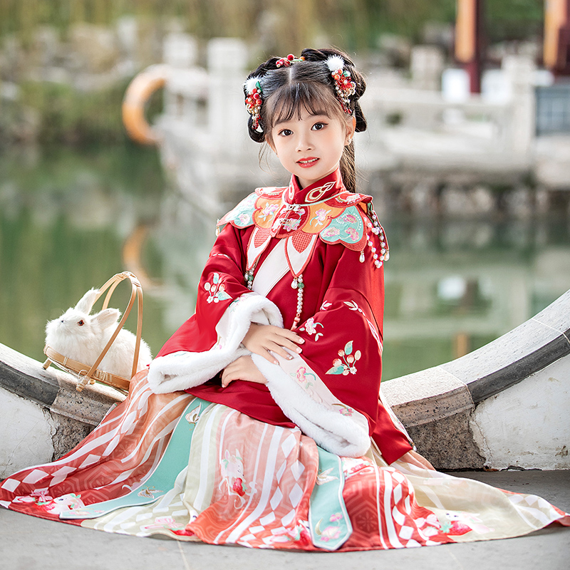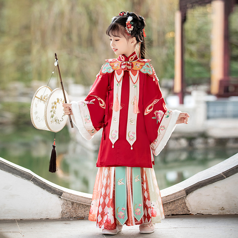 Hanfu girls 2021 new Ming-made cloud shoulder national style children's big-sleeved Tang suit thickened super fairy little girl children's clothing winter