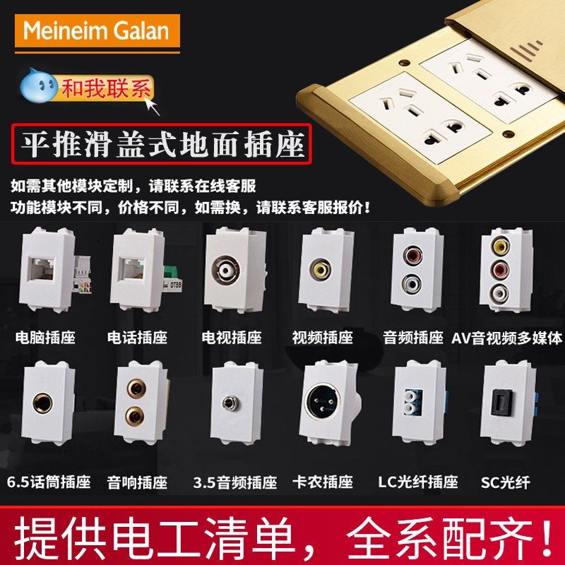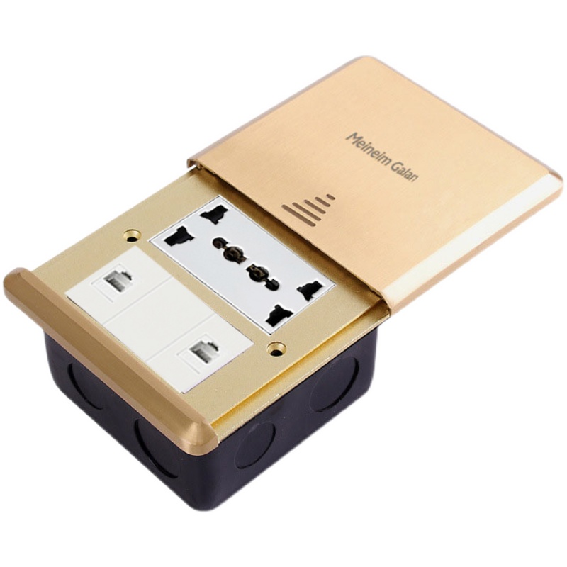 Flat push-type ground plug all copper waterproof ground socket Hong Kong-style 13A six-hole five-hole telephone network network interface floor socket