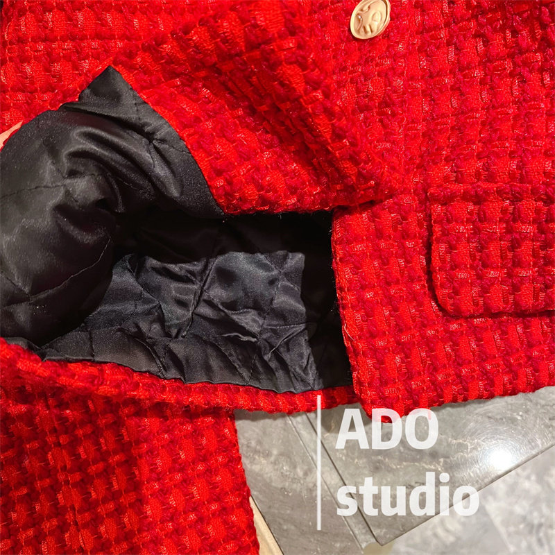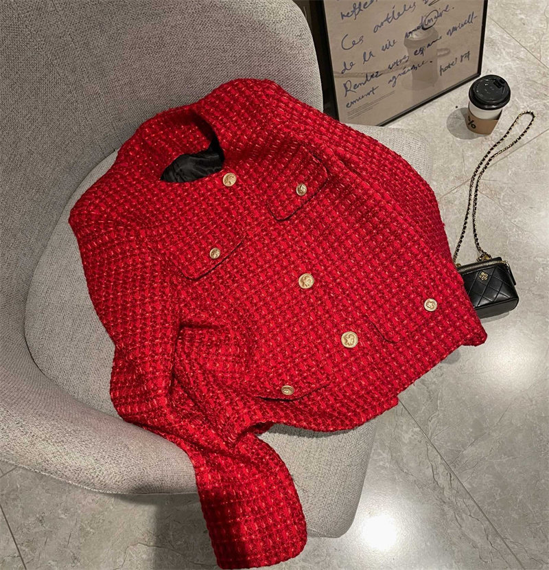 Cherry red small fragrant wind jacket woman 2022 spring dress new and delicate gold button temperament famous yuan Wind short coat blouses female