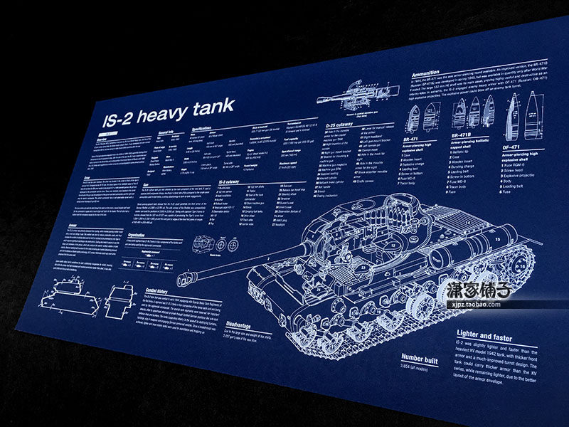 World War II Soviet Union IS-2 Heavy Tank Drawing Blueprint Poster Decorative Painting
