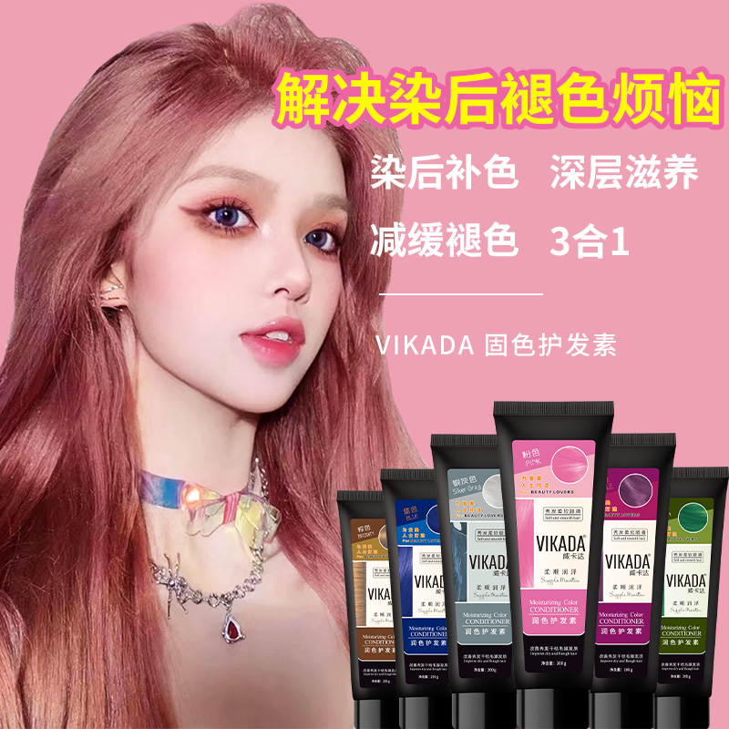 vikada solid color conditioner dyed after color protection pink gray blue purple lock color complementary color to yellow purple shampoo
