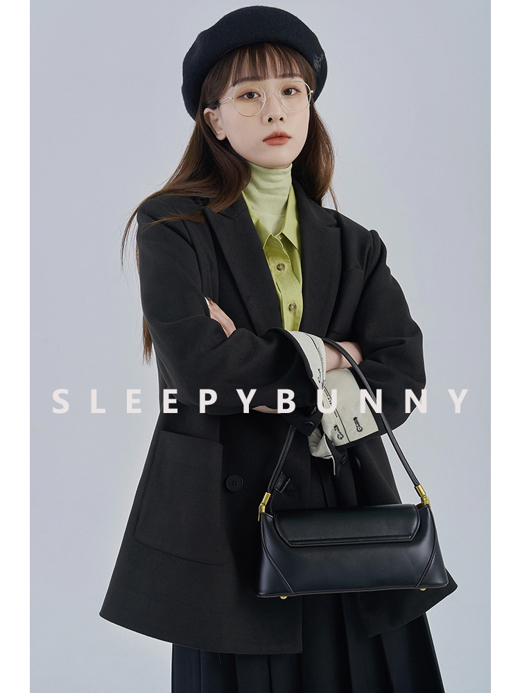 Dozing Rabbit Temperament Stuffiness Cuffs Double Platoon Buttoning Outline Shape Suit Short Fur Suit Right Angle Laying Cotton Jacket