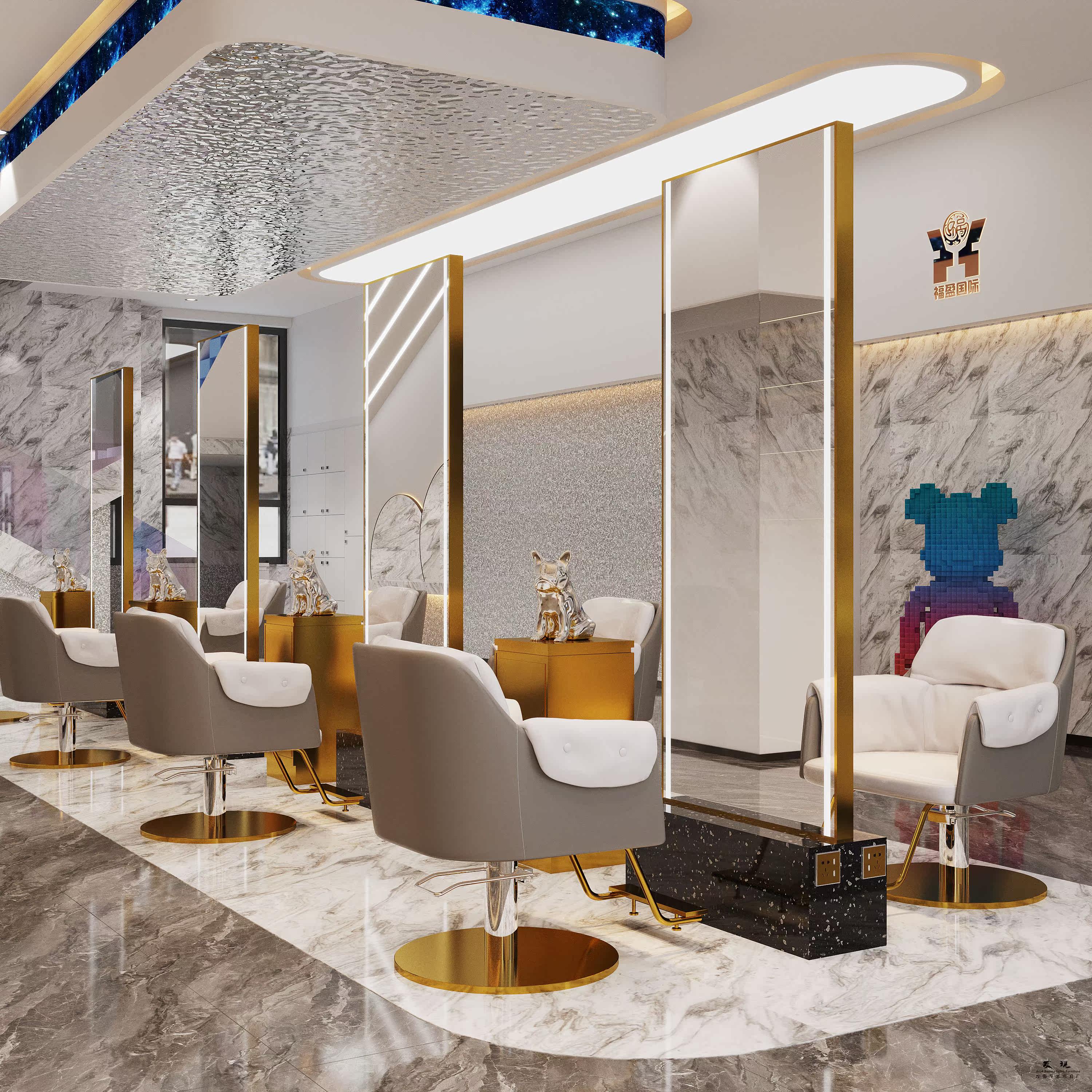 Li Kun shop mirror table single and double-sided hairdressing mirror hair salon dedicated with lamp perm dyeing area haircut against the wall floor mirror tide shop