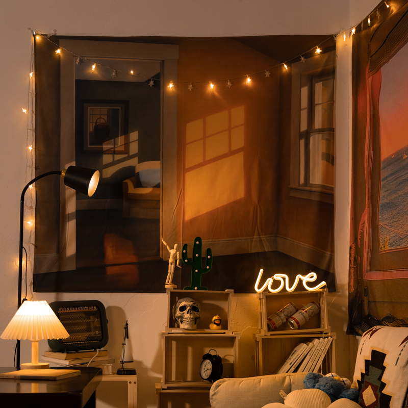 Sea view window background cloth ins wind fresh bedroom bedside hanging cloth dormitory rental house renovation homestay decorative wall cloth