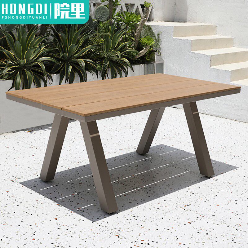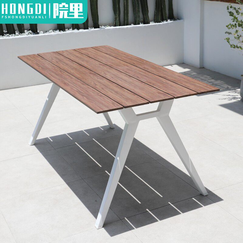 Outdoor table courtyard slate dining table open-air garden aluminum alloy long table outdoor terrace leisure anti-corrosion wood table and chairs