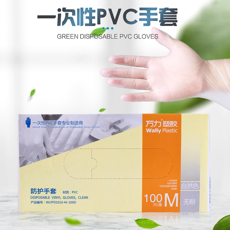100 Wanli gloves PVC disposable transparent food grade dishwashing kitchen catering powder-free thickening protection