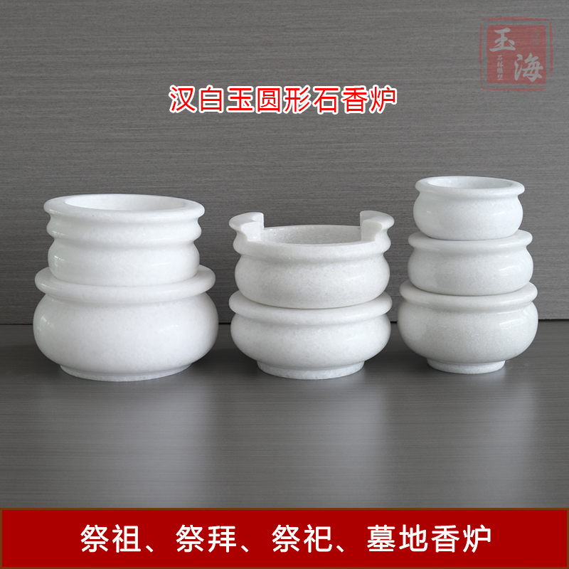 White jade round 11cm censer with glue and white jade round 13cm censer with glue and white jade 15cm censer with glue and white jade round 17cm censer with glue and white jade