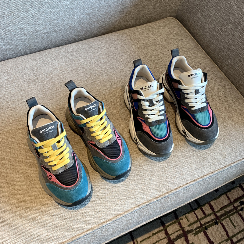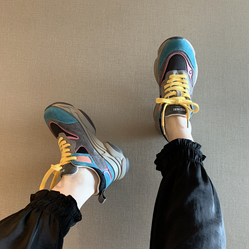 Nicole veve daddy shoes tide ins net red color matching lacing thick bottom casual sports shoes women's shoes