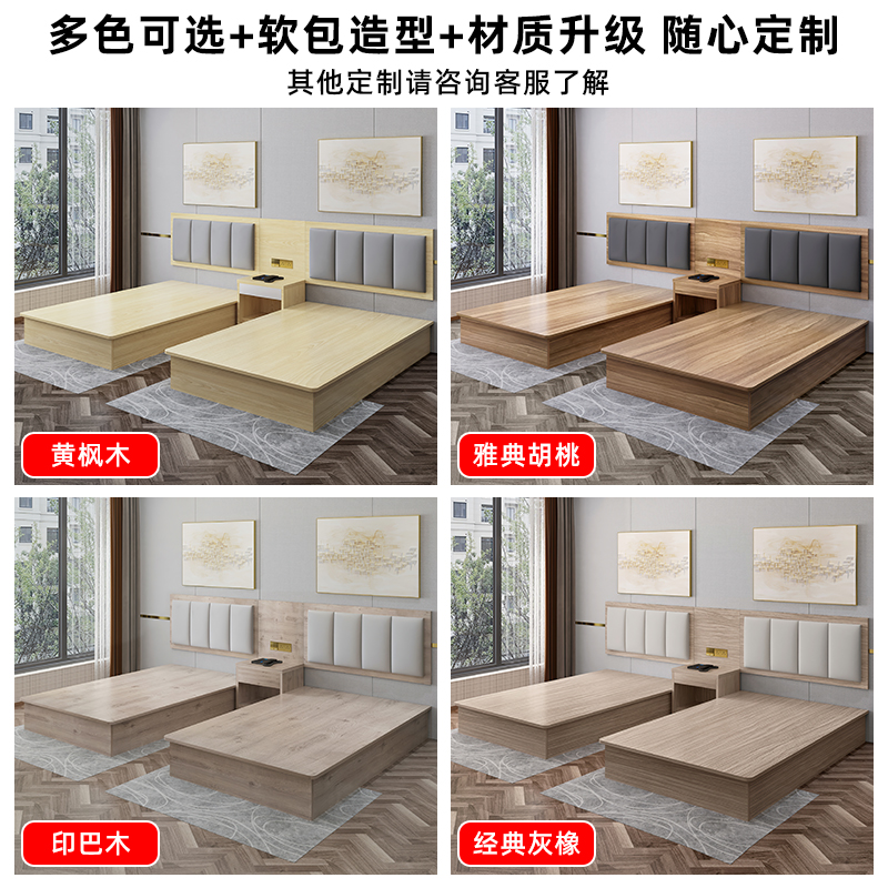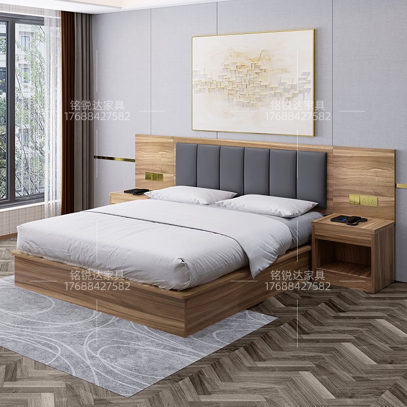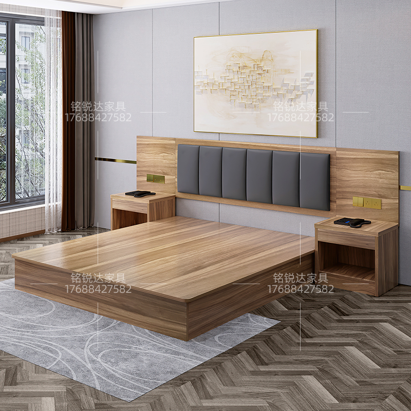 Guesthouse bed Quick hotel furniture bed custom luxury label room full apartment combination single bed