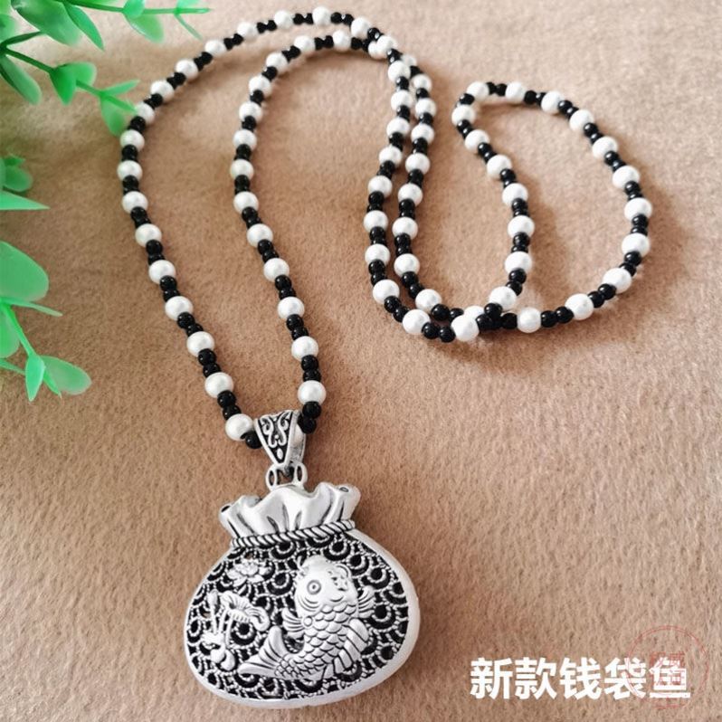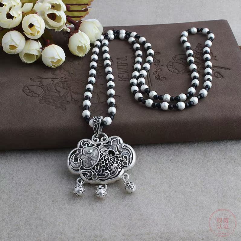 Retro to run the streaming Su pendant Tibetan silver long version of the sweater necklace pendant national wind Quartet to make a fortune necklace ornament