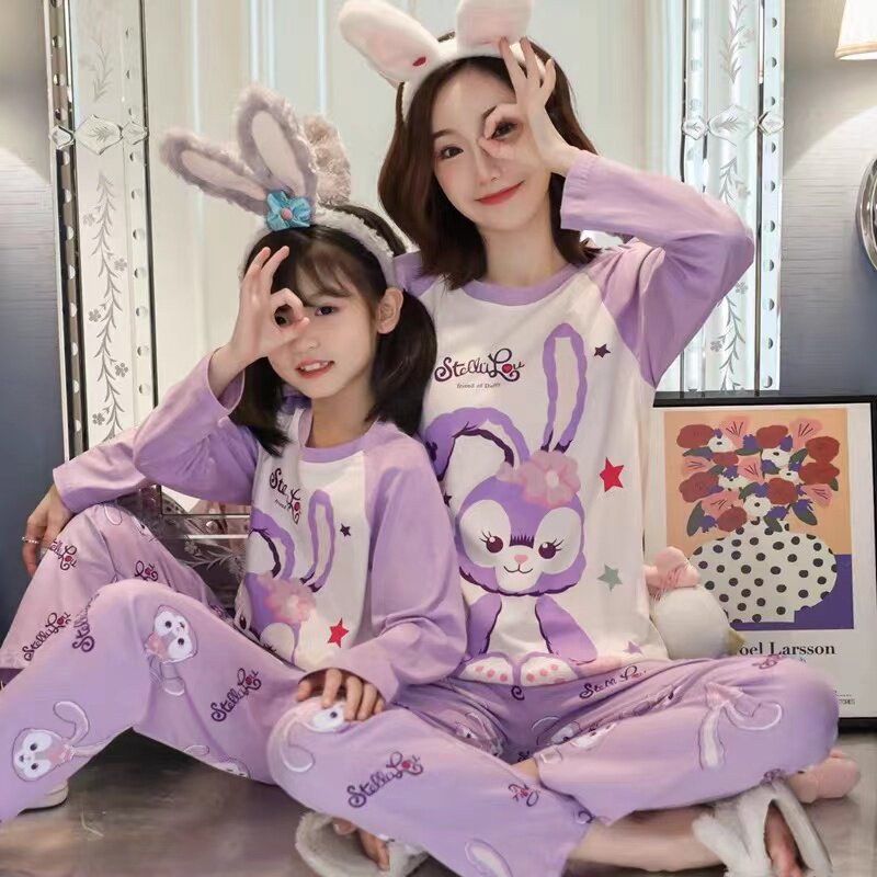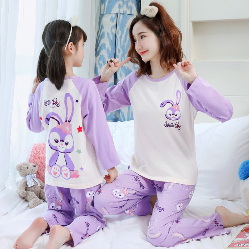 Mother Girl Sleepwear Pure Cotton Long Sleeve Spring Fall Kiss Girl Cute Girl CUHK Child Cartoon Children's Home Suit Suit