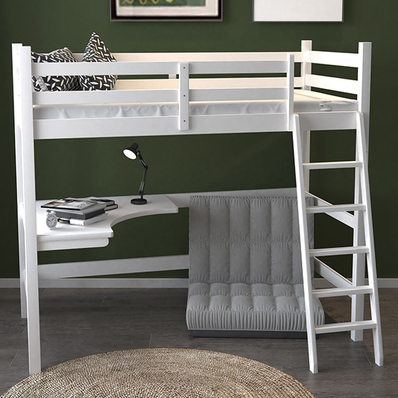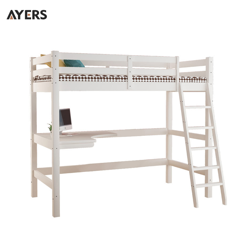High and low bed with desk Twin Beds Solid Wood Elevated Bed Adult Bed Versatile Combined Bed Under Bed Lower Bed Lower Table