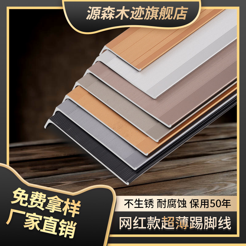 Aluminum alloy skirting line metal stainless steel ultra-thin self-adhesive floor board living room bedroom tile thickened wall stickers white