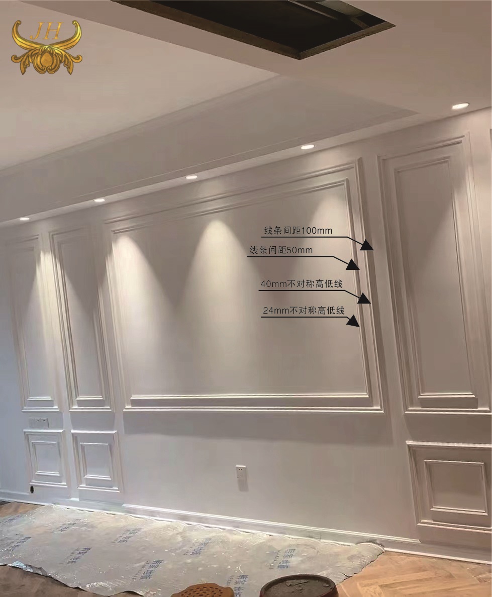 pu line French style uplift suspended ceiling mesh red decoration line imitation plaster line TV background frame styling manufacturer