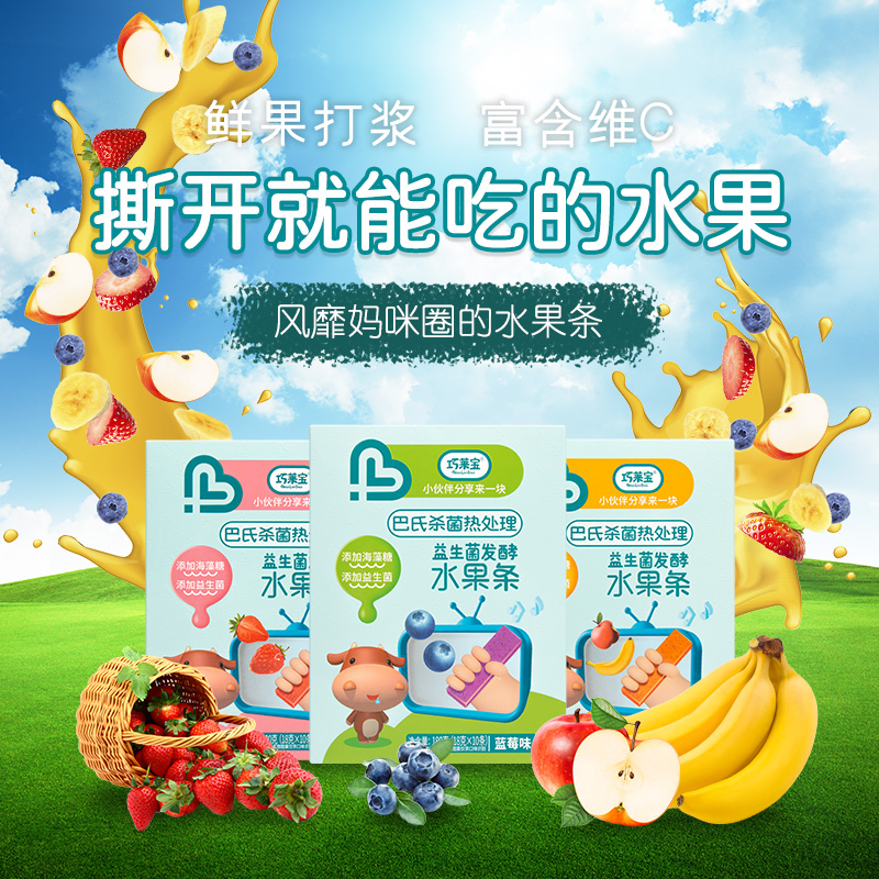 Qiaolaibao multi-flavored fruit strips 18g*10 strips probiotic nutritional snacks soft waxy and strong pulp strips