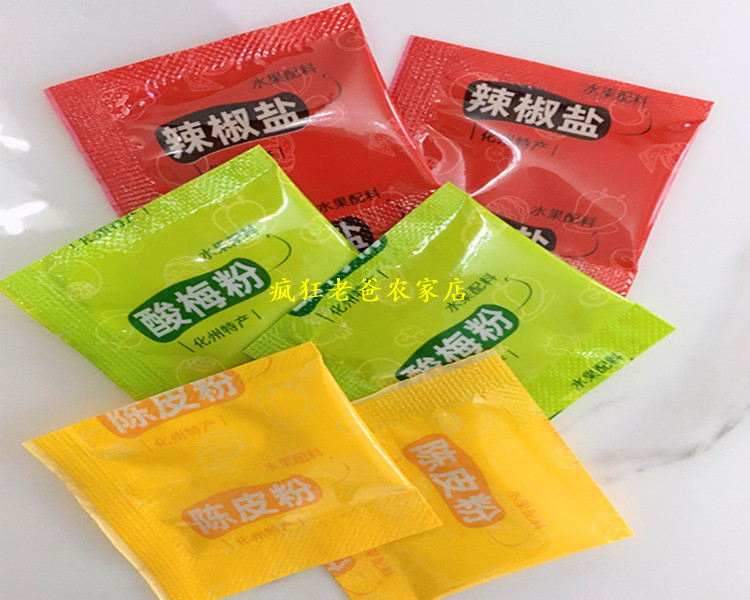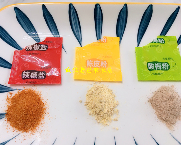 150g fine chili salt powder (about 49 packets) 150g fine tangerine peel powder (about 66 packets) 150g sour plum powder (about 45 packets) fine tangerine peel powder + sour plum powder (about 55 packets 150g)