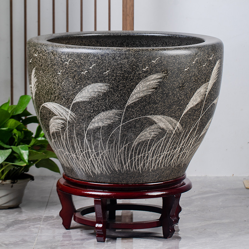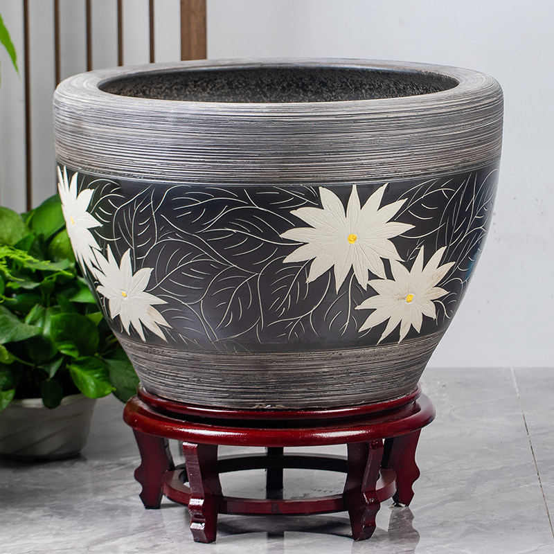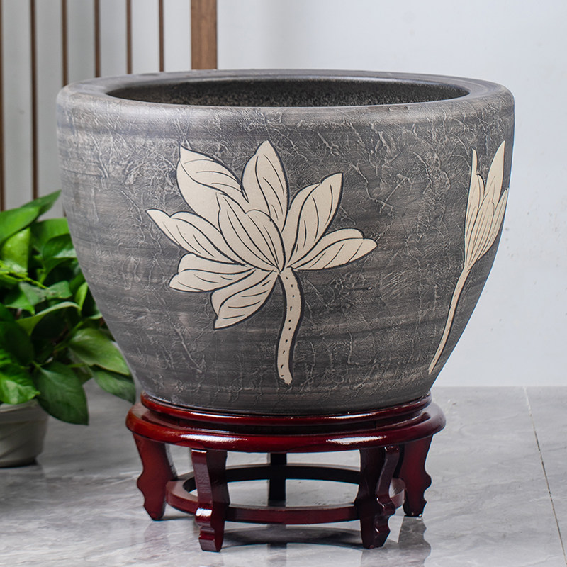 Jingdezhen Ceramic fish tank Lotus Flowers Sleeping Lotus Pelvis Turtle Brocade Carp in Calligraphy And Painting Cylinder Water Cylinder Courtyard Living Room Office
