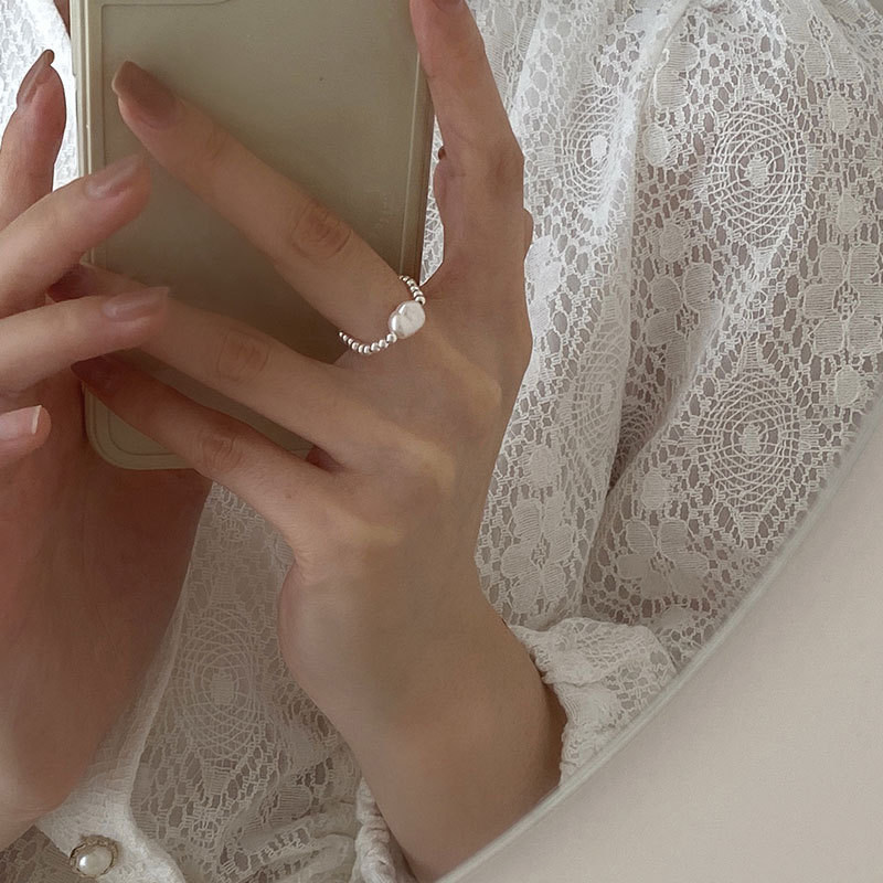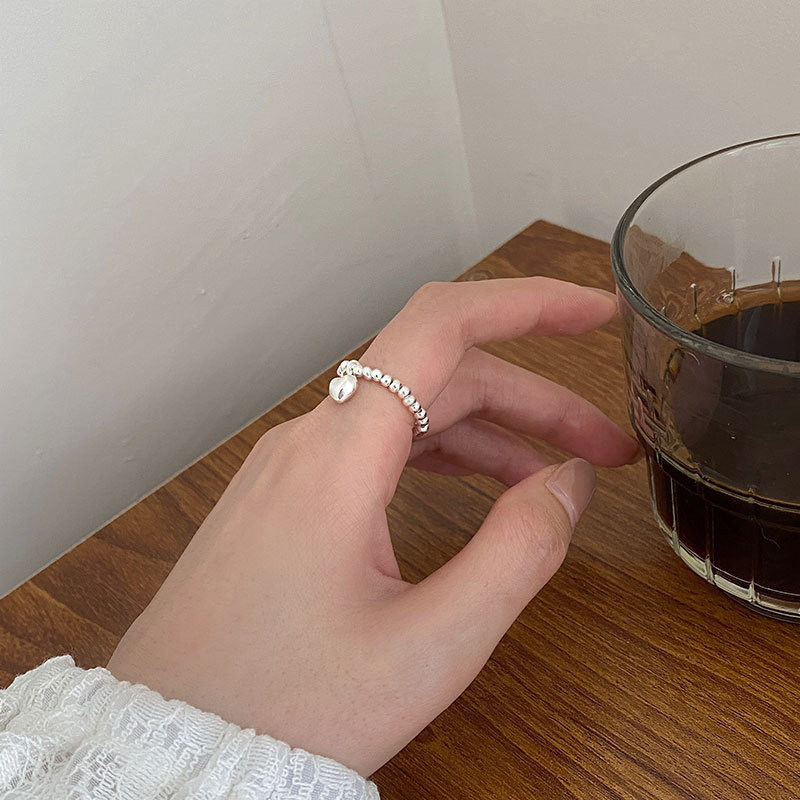 New bright silver pearl elastic rope ring 925 sterling silver simple personality bear love index finger ring for children