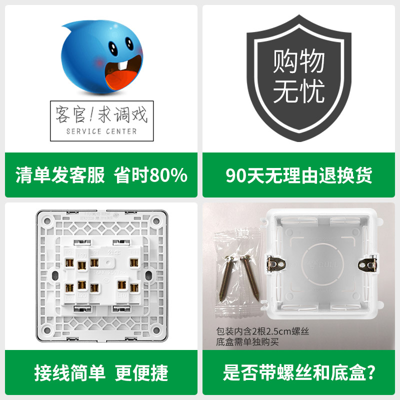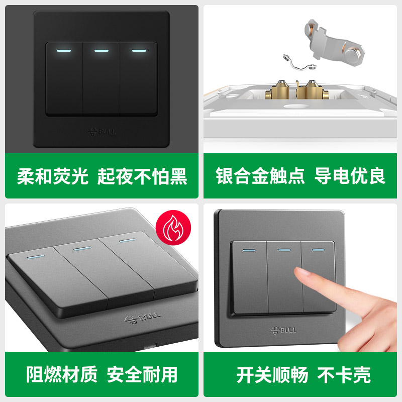 Bull Three Open Double Cut Switch Panel Home Concealed 86 Type three open Double League bedroom Three switches G07 grey