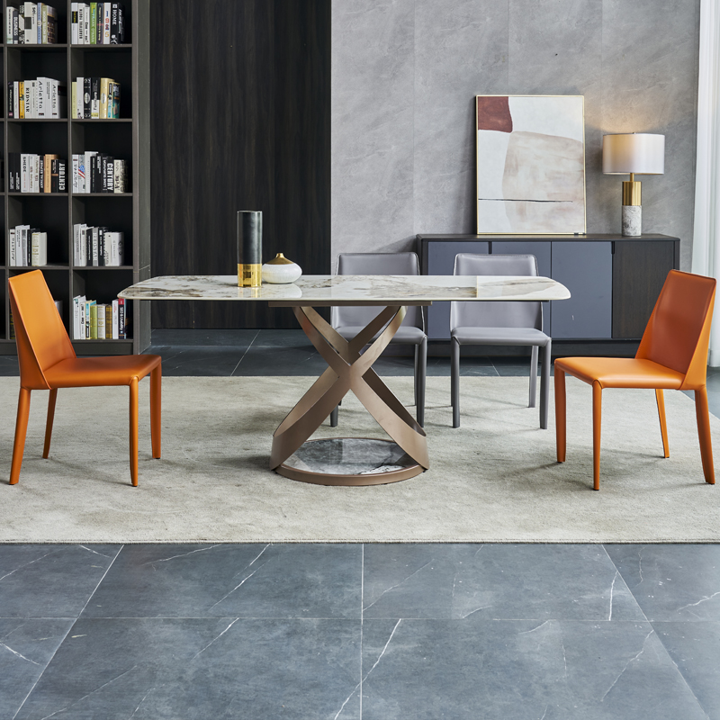 Light and luxurious wood-style bright light rock plate dining table and chairs combined modern extremely simple dining table rectangular home high-end dining table-Taobao