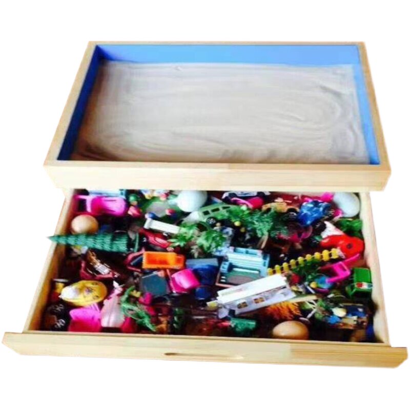 Psychological counseling sandware decoration parent-child family desktop toy double-layer drawer sand table with 200 pieces sandware set