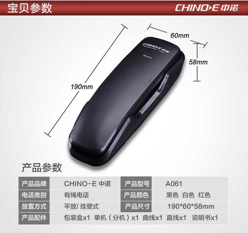 Zhongnuo A061 wall-mounted wall-mounted fixed telephone wall-mounted landline home office hotel mini extension