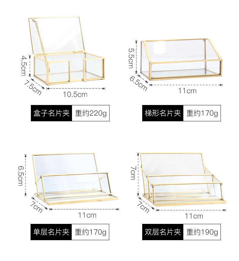 Light luxury brass business card box business large capacity transparent glass storage box desktop decoration creative business card display