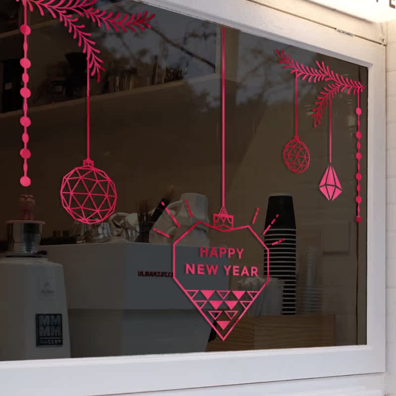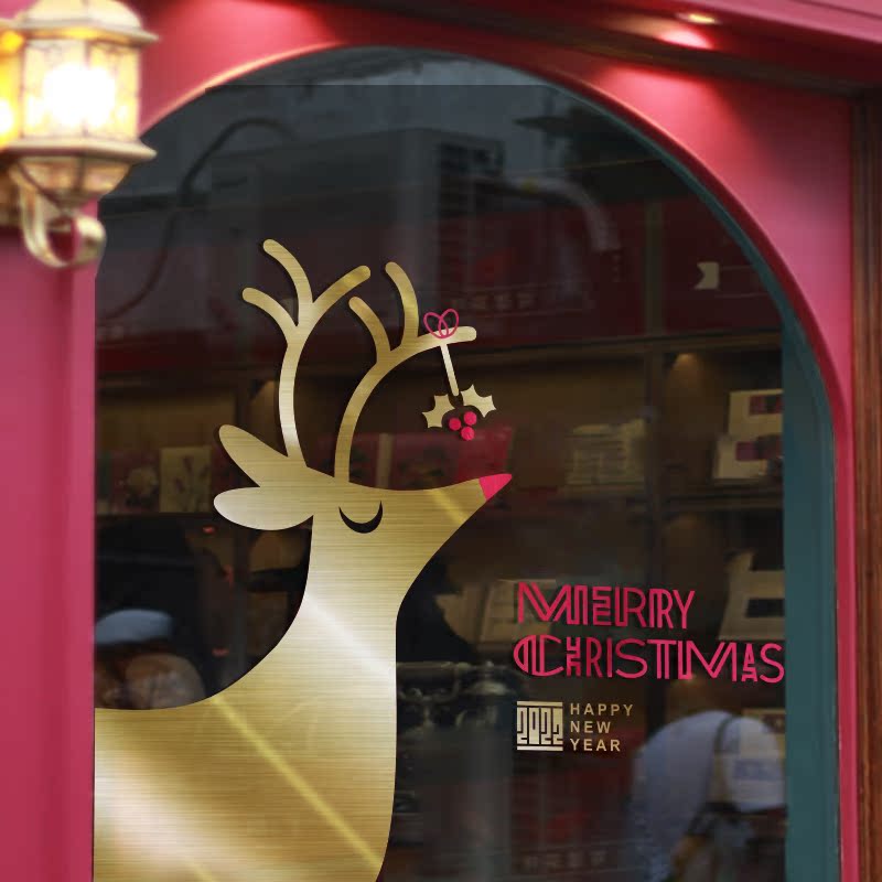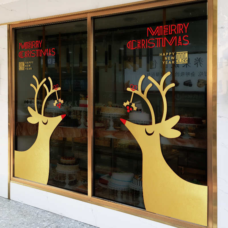 Christmas sticker cartoon elk shop window decorated Christmas window Snow Flower Restaurant glass door sticker