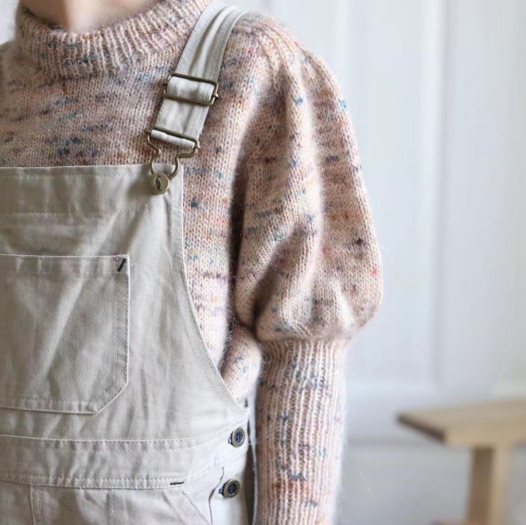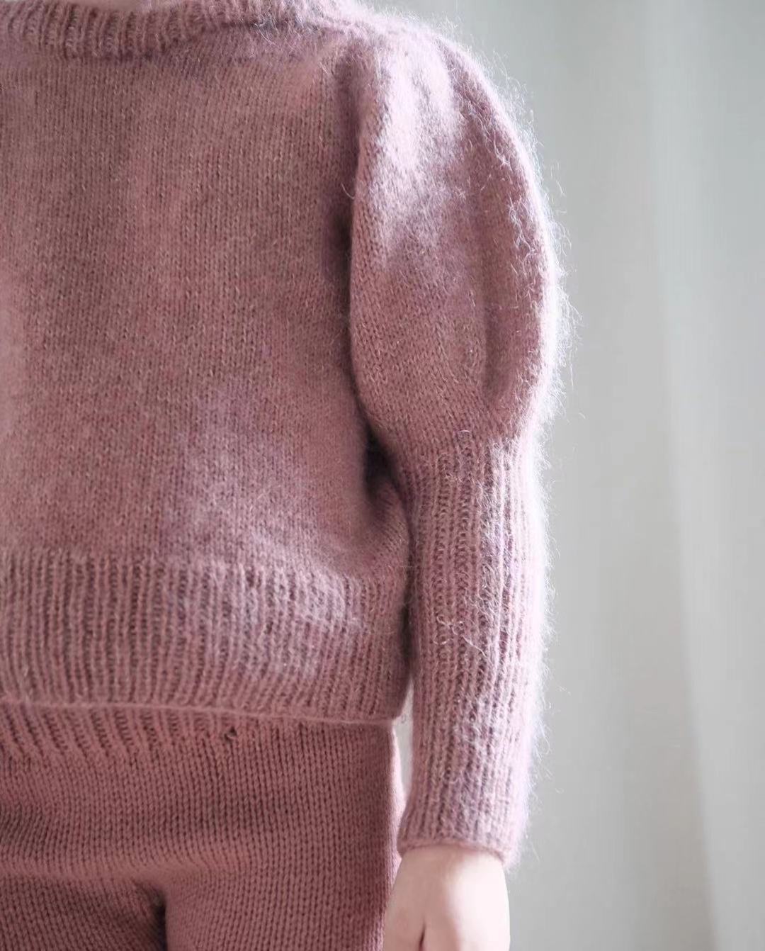 She She Pullover Girls Puff Sleeve Sweater Chinese Text Graphics Unfinished Products
