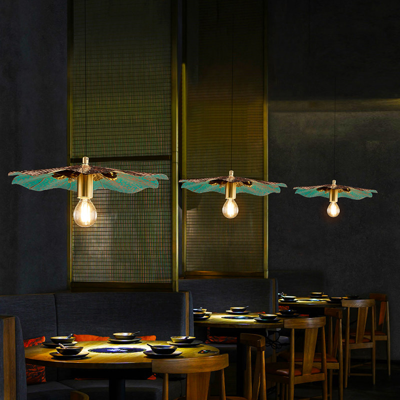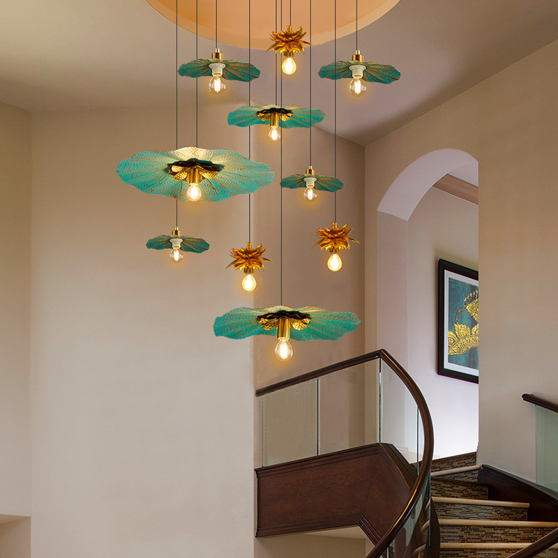 Taiyu all-copper lotus leaf dining room dining room table art led chandelier Thai-style duplex staircase porch creative lighting