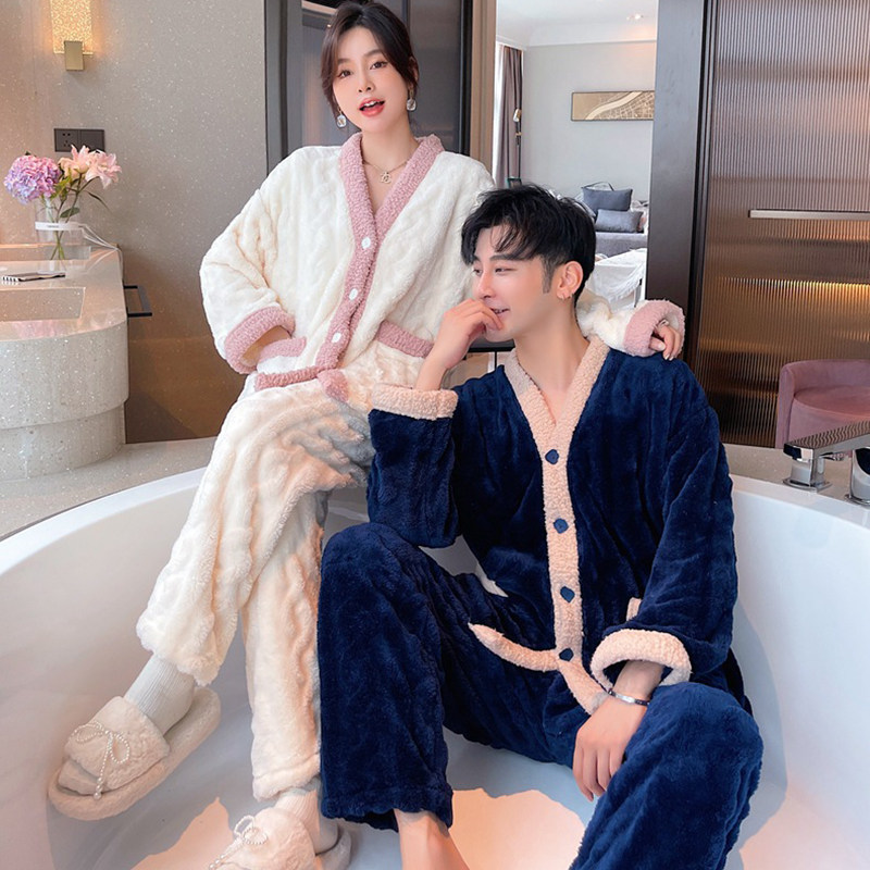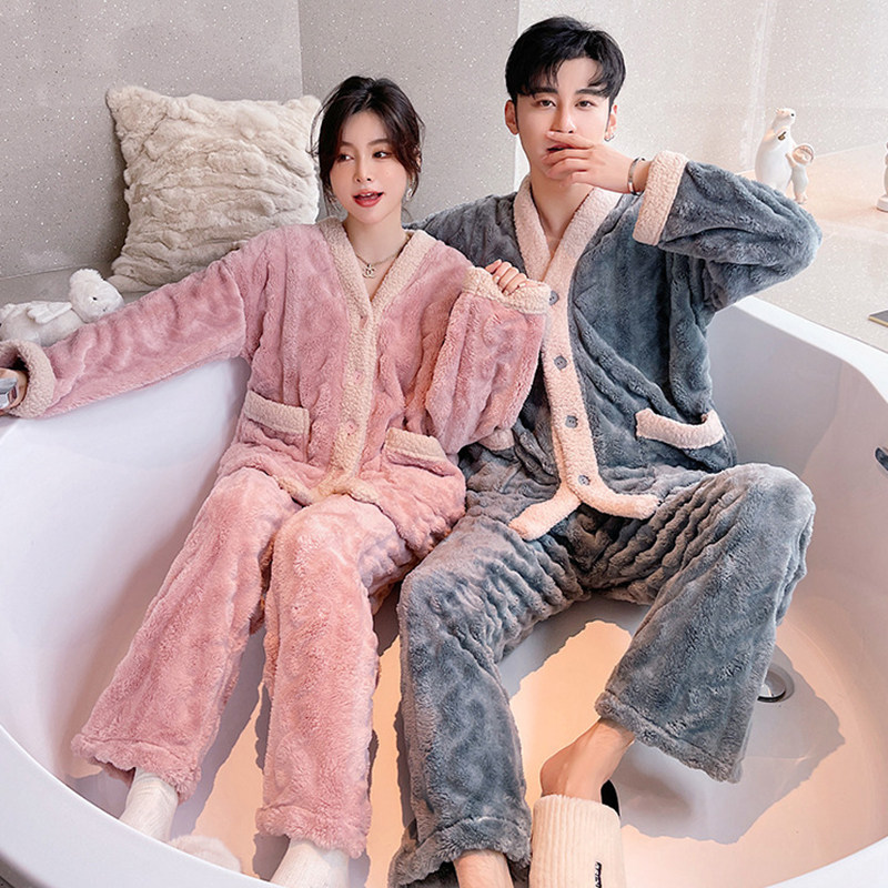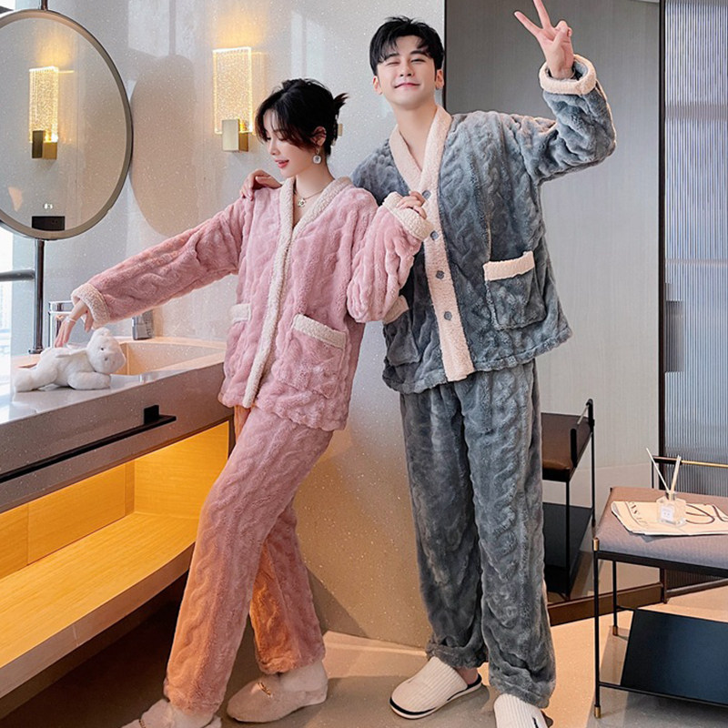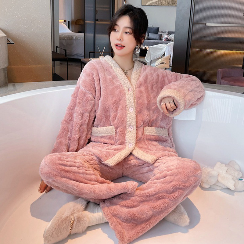 Winter sweet coral fleece pajamas for women winter style plus velvet thickened flannel 2021 winter new home wear